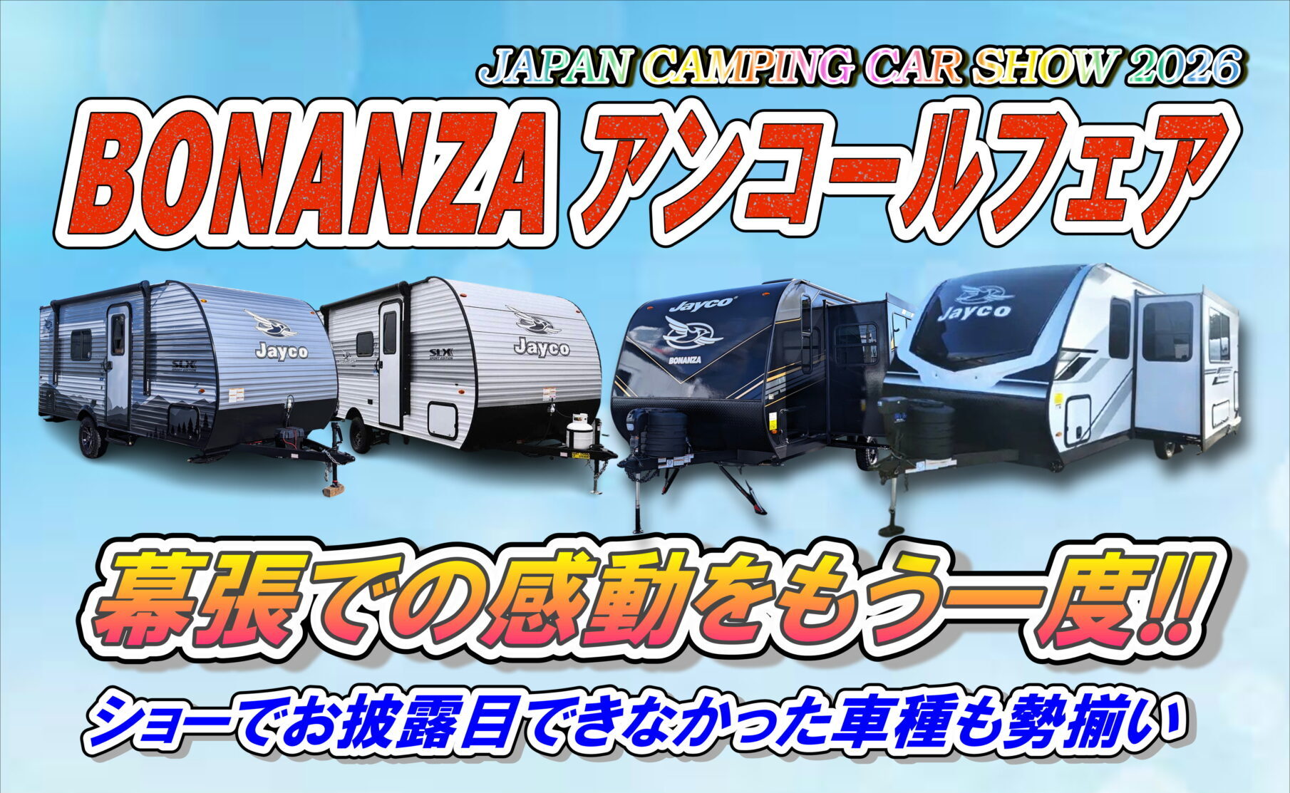 キャンプの常識を覆す!本場アメリカのキャンピングトレーラーとは!? Jayco正規輸入代理店であるJayco Japan / 株式会社ボナンザがキャンプを通してトレーラーの魅力をお送りするYoutubeチャンネル!