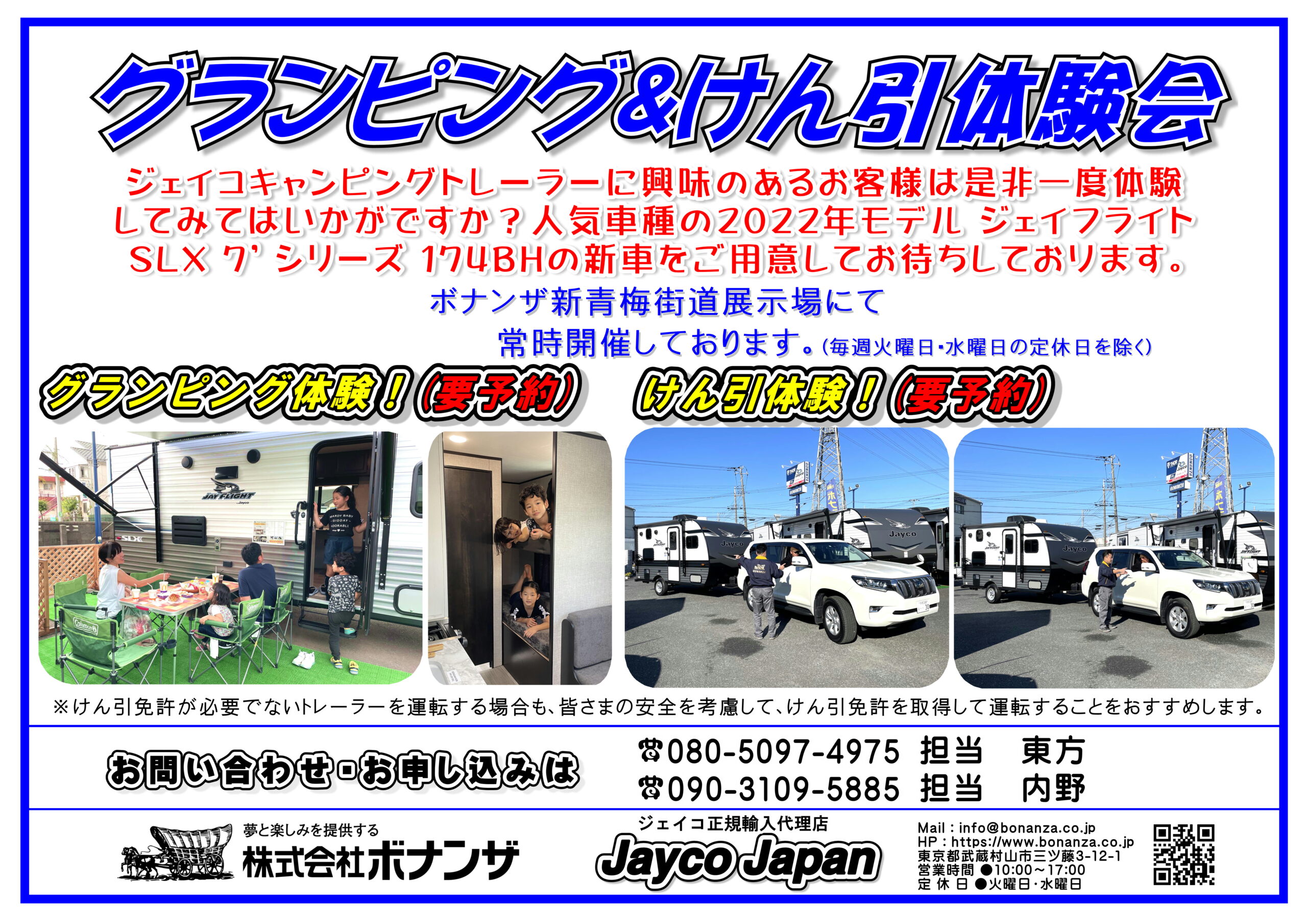 BONANZAでは~グランピング&けん引体験会~ を常時開催中!!